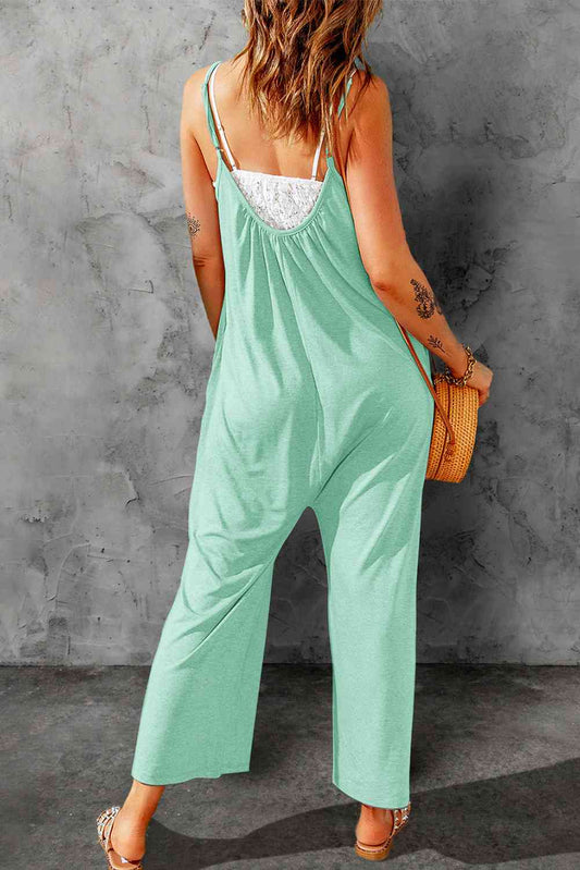 Spaghetti Strap V-Neck Jumpsuit with Pockets