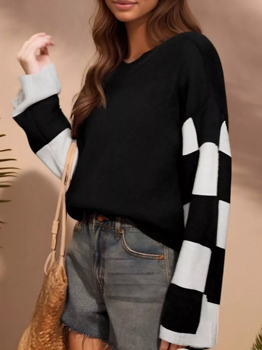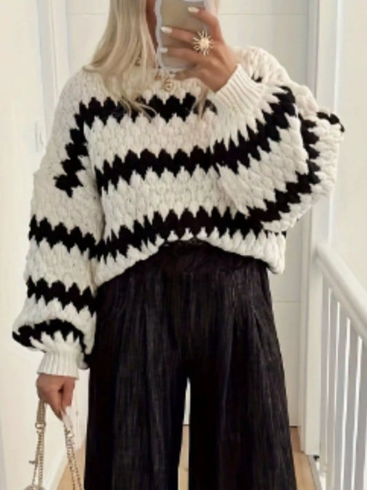 Geometric Round Neck Long Sleeve Sweater