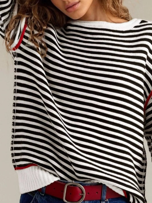 Regular price $65.46 USDRegular priceUnit price / per$65.46 USDSale price $65.46 USDStriped Round Neck Long Sleeve Sweater