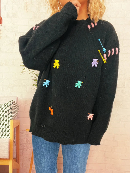 Regular price $76.40 USDRegular priceUnit price / per$76.40 USDSale price $76.40 USDBear Decoration Round Neck Sweater