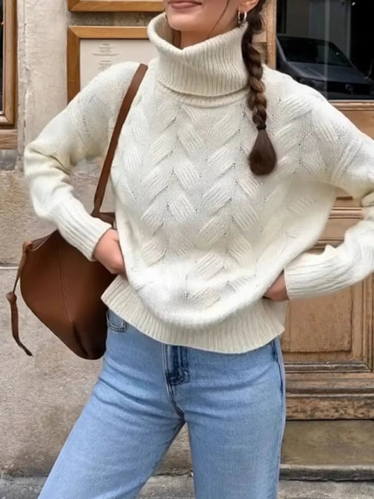 Ribbed Hem Turtleneck Long Sleeve Sweater