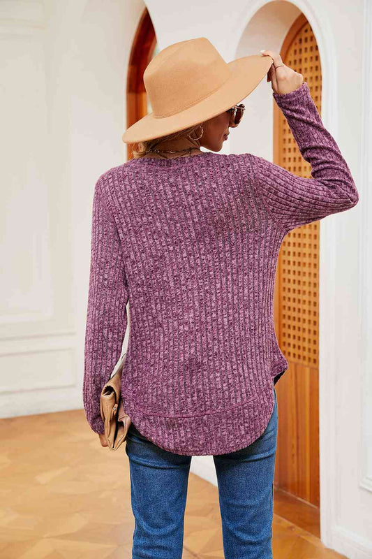 Zenana Full Size Round Neck High-Low Slit Knit Top