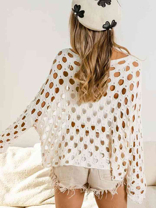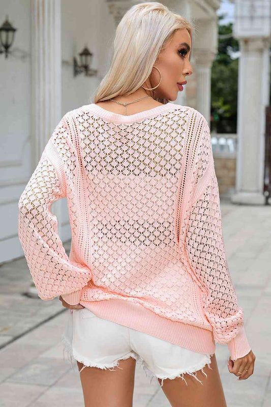 Regular price $29.82 USDRegular priceUnit price / per$29.82 USDSale price $29.82 USDRound Neck Openwork Long Sleeve Knit Top