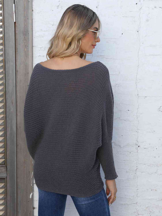 Full Size Horizontal Ribbing Dolman Sleeve Sweater