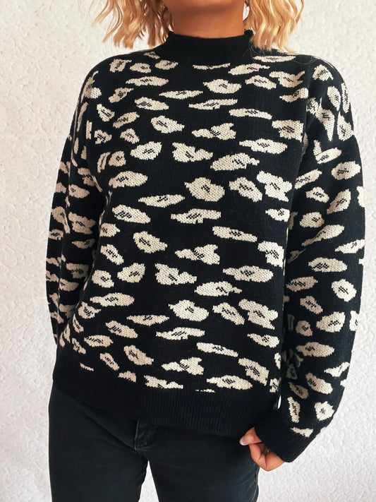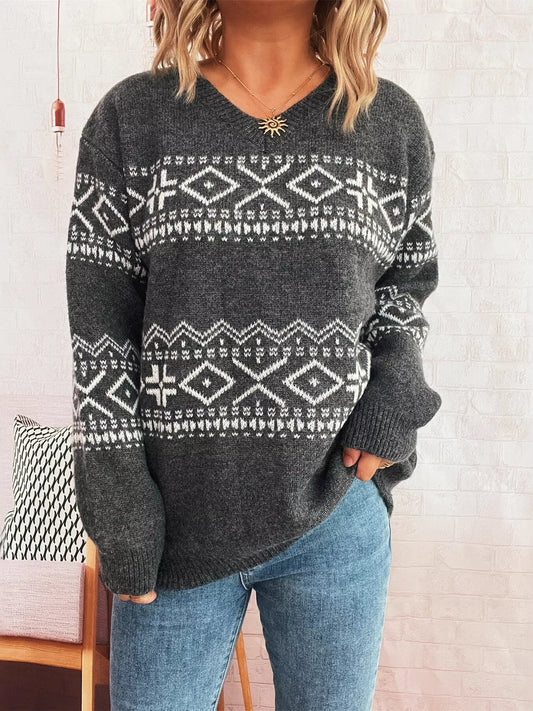 Geometric Dropped Shoulder Long Sleeve Sweater