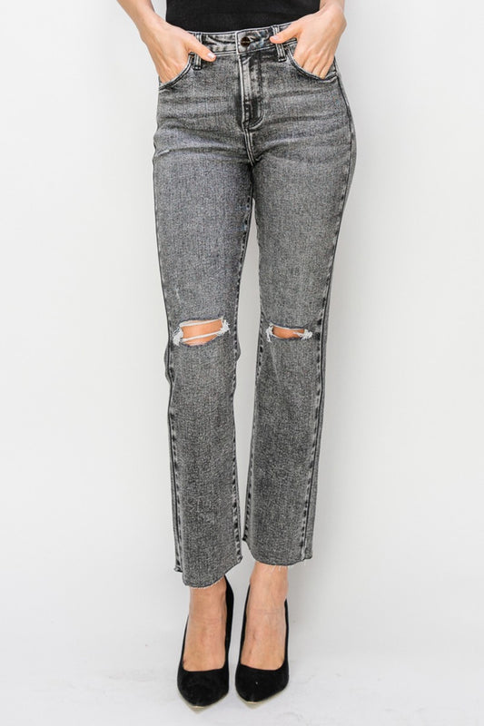 RISEN High Waist Distressed Straight Jeans
