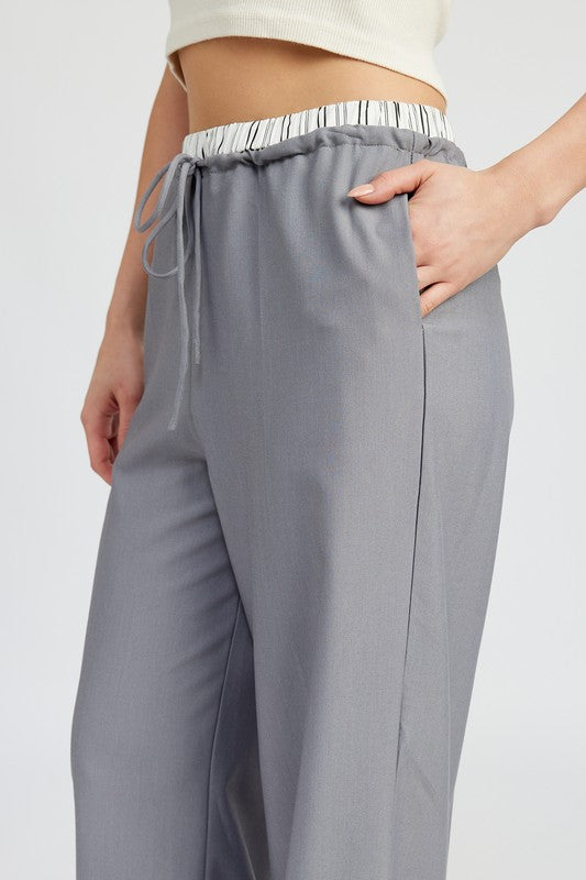 DOUBLE WAIST STREUIGHT LEG PANTS