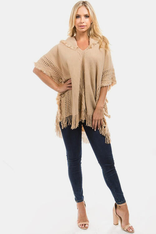 Regular price $30.16 USDRegular priceUnit price / per$30.16 USDSale price $30.16 USDFringe Trim Buttoned Hooded Poncho