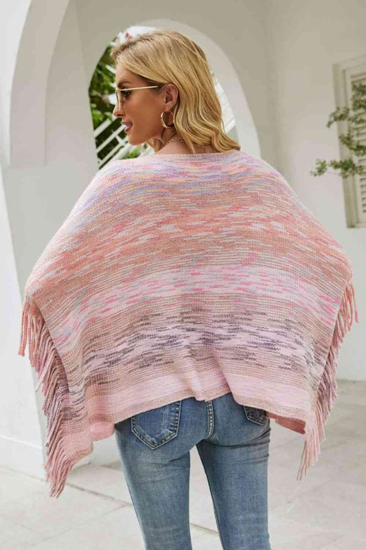 Leto Desert Ambiance Colorblend Tassel Trim Poncho