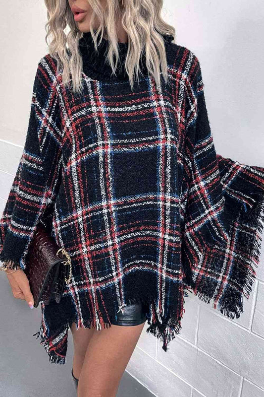 Regular price $31.32 USDRegular priceUnit price / per$31.32 USDSale price $31.32 USDPlaid Turtleneck Fringe Hem Poncho