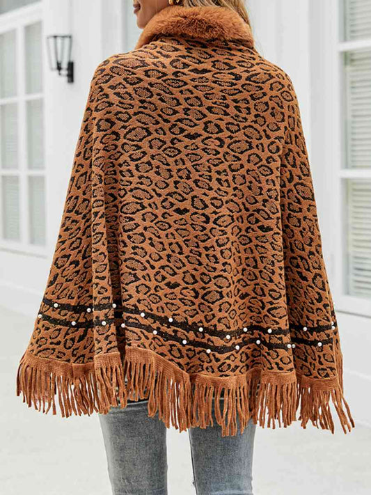 Regular price $33.04 USDRegular priceUnit price / per$33.04 USDSale price $33.04 USDLeopard Fringe Hem Poncho