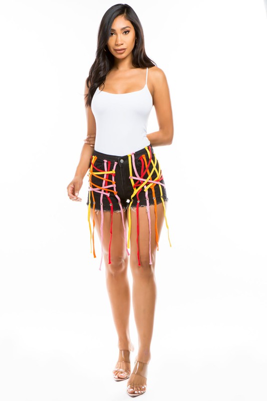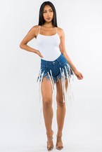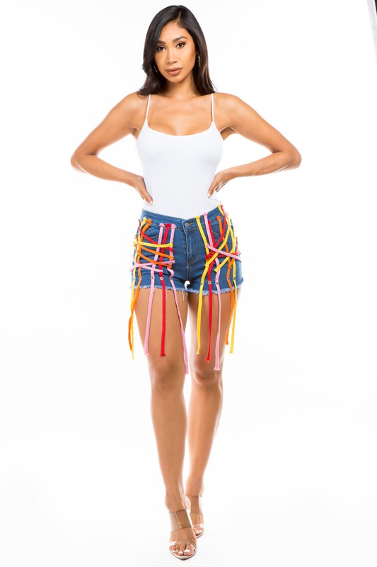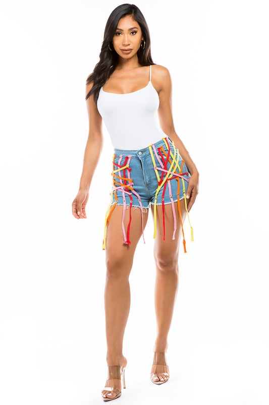 RISEN Raw Hem Asymmetrical Waist Denim Shorts