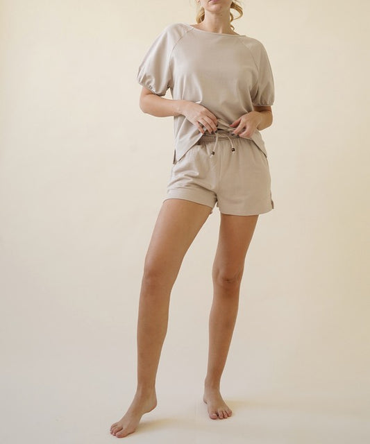 Double Take Full Size Texture Raw Trim Drawstring Shorts