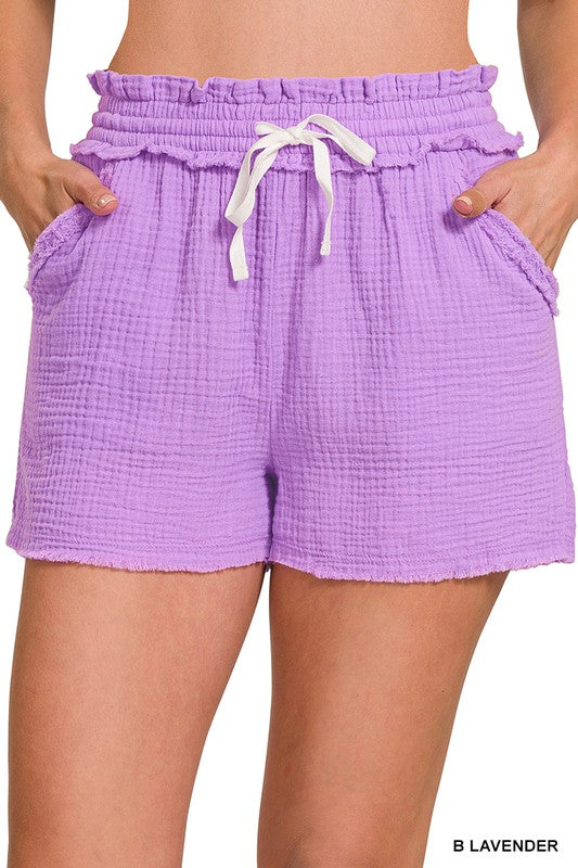 Regular price $20.57 USDRegular priceUnit price / perSale price $20.57 USDLinen Frayed Hem Drawstring Shorts with Pockets