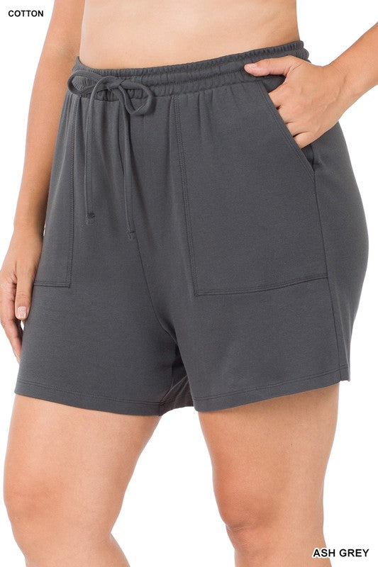 Plus Cotton Drawstring Waist Shorts