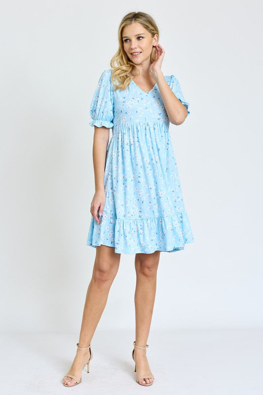 ODDI Full Size Floral Puff Sleeve Mini Dress