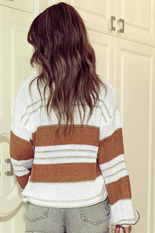 Striped Drop Shoulder Lantern Sleeve Sweater