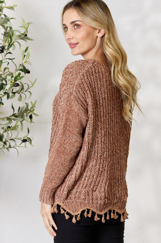 BiBi Tassel Trim Long Sleeve Sweater