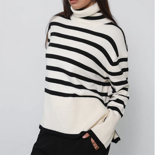 Striped Turtleneck Flare Sleeve Sweater