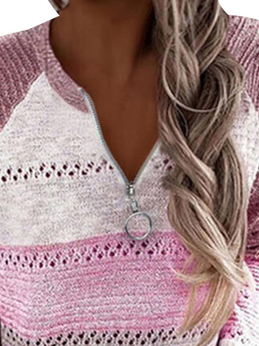 Full Size Color Block Half Zip Sweater
