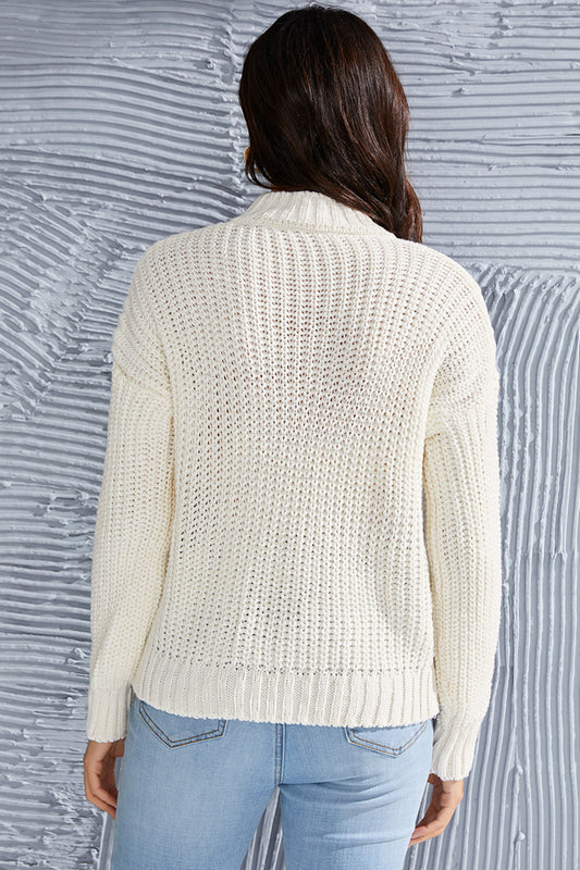 Ribbed Turtleneck Dropped Shoulder Pullover Sweater