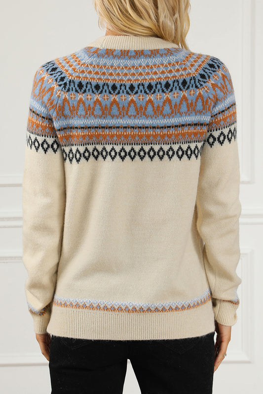 Geometric Round Neck Long Sleeve Sweater