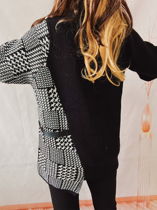 Geometric Turtleneck Long Sleeve Sweater