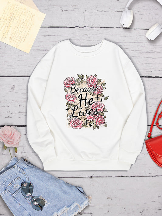 BECAUSE HE LIVES Round Neck Sweatshirt