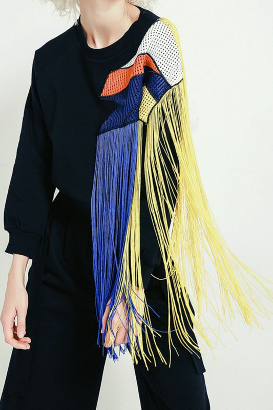 Regular price $80.04 USDRegular priceUnit price / per$80.04 USDSale price $80.04 USDFringe Contrast Round Neck Sweatshirt