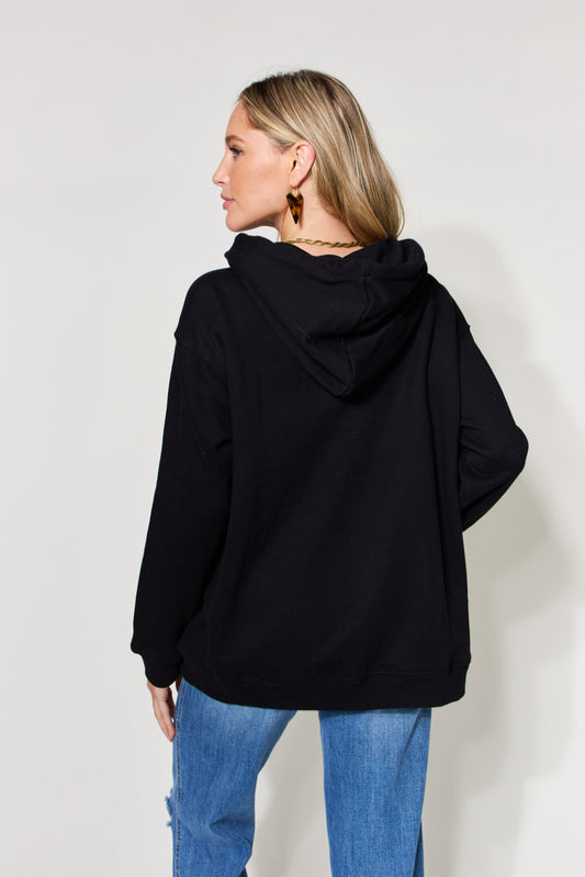 Zenana Drawstring Half Zip Dropped Shoulder Hoodie