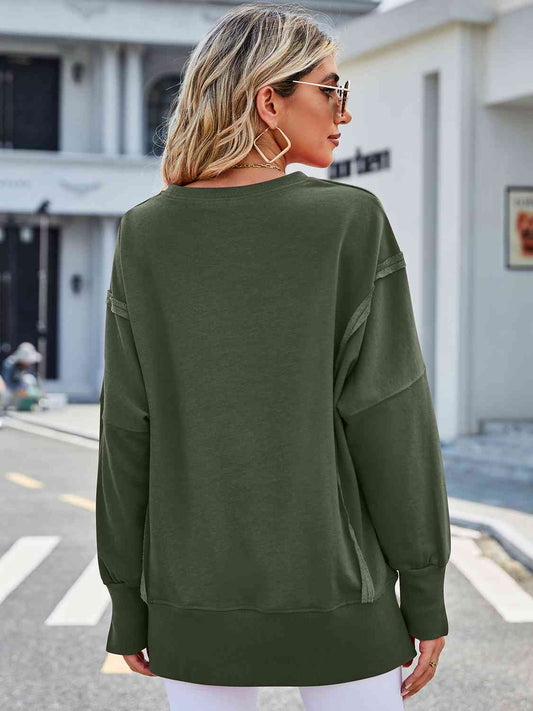 Round Neck Drop Shoulder Long Sleeve Sweatshirt