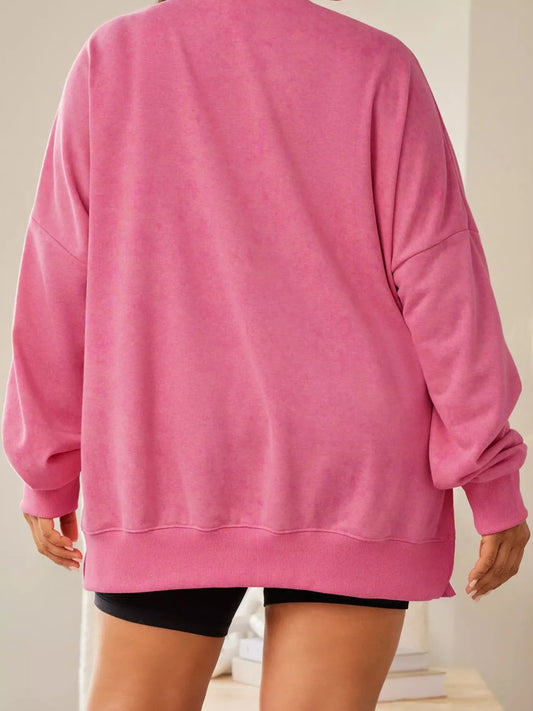 Umgee Round Neck Long Sleeve Fleece Sweatshirt