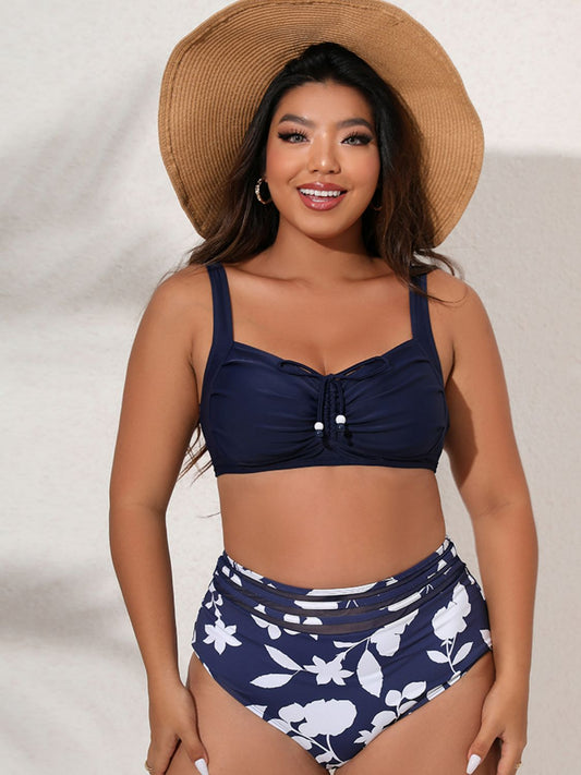 Plus Size Floral Ruched Cutout Sleeveless Two-Piece Swim Set