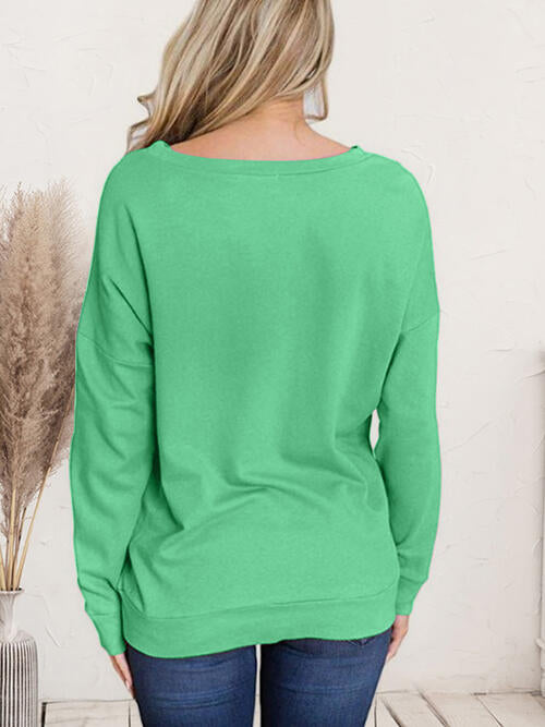V-Neck Christmas Graphic High-Low Design Long Sleeve Top