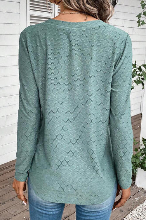 Scoop Neck Buttoned Long Sleeve T-Shirt