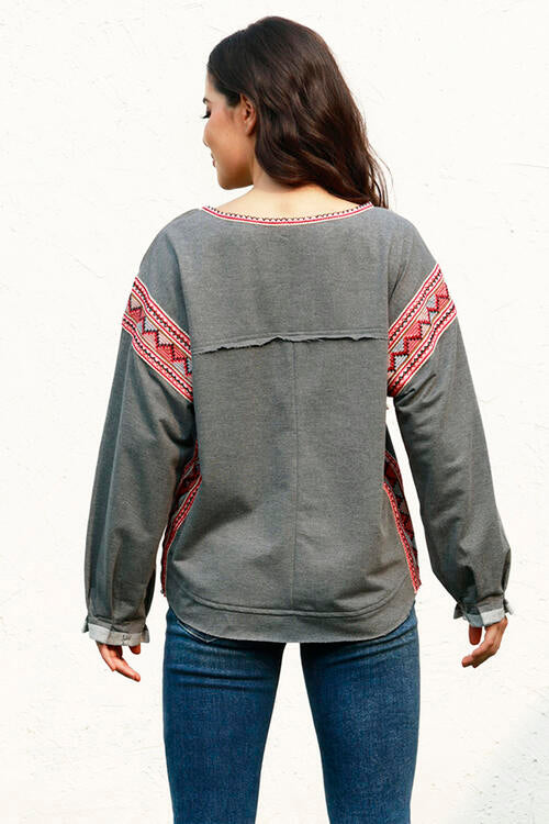 Regular price $24.40 USDRegular priceUnit price / per$24.40 USDSale price $24.40 USDV-Neck Lace Detail Long Sleeve Top