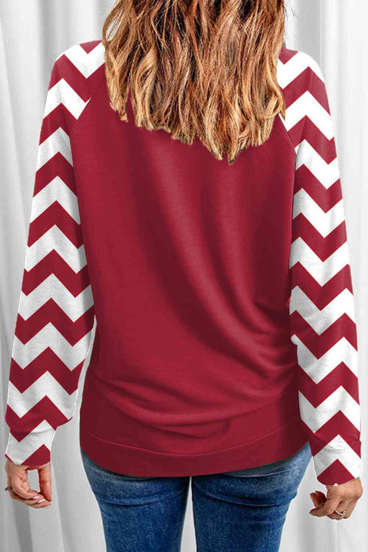 Round Neck Contrasting Color Printed Lantern Sleeve Top