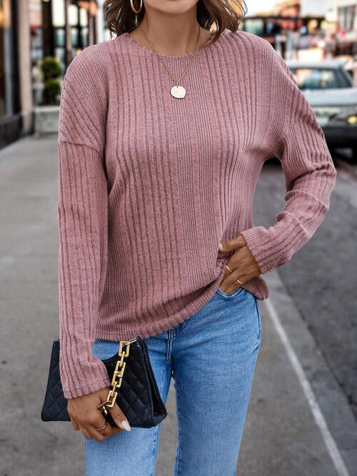 Basic Bae Full Size Ribbed Round Neck Long Sleeve Knit Top