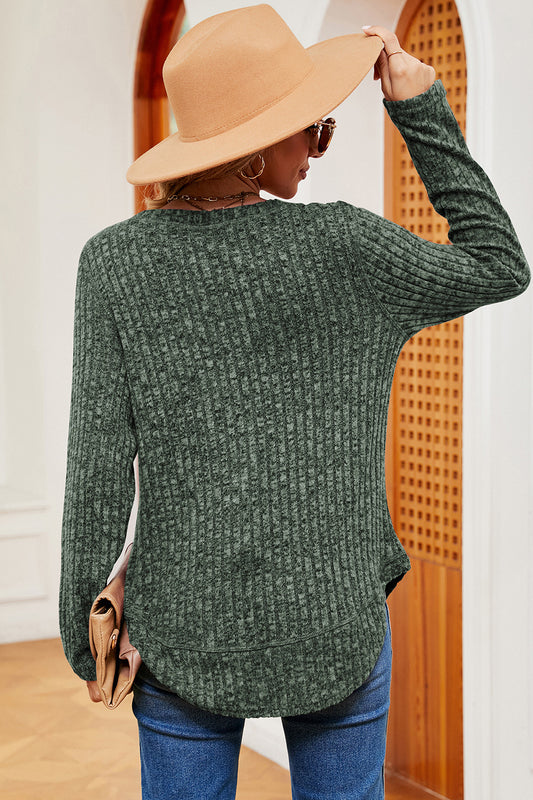 Ribbed Round Neck Long Sleeve T-Shirt