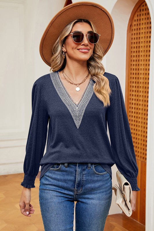 V-Neck Lantern Sleeve T-Shirt