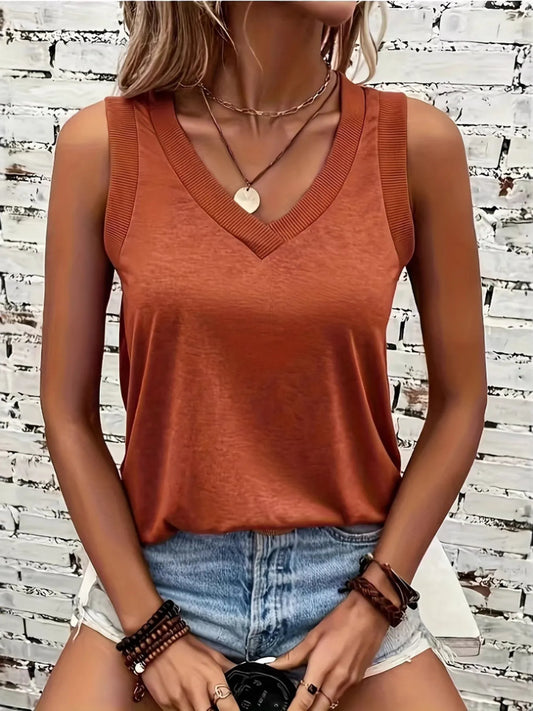 Regular price $30.30 USDRegular priceUnit price / per$30.30 USDSale price $30.30 USDBreathable V-Neck Ribbed-Band Tank Top