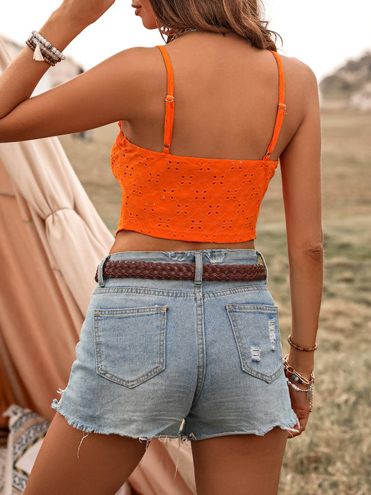 Eyelet V-Neck Wide Strap Tank