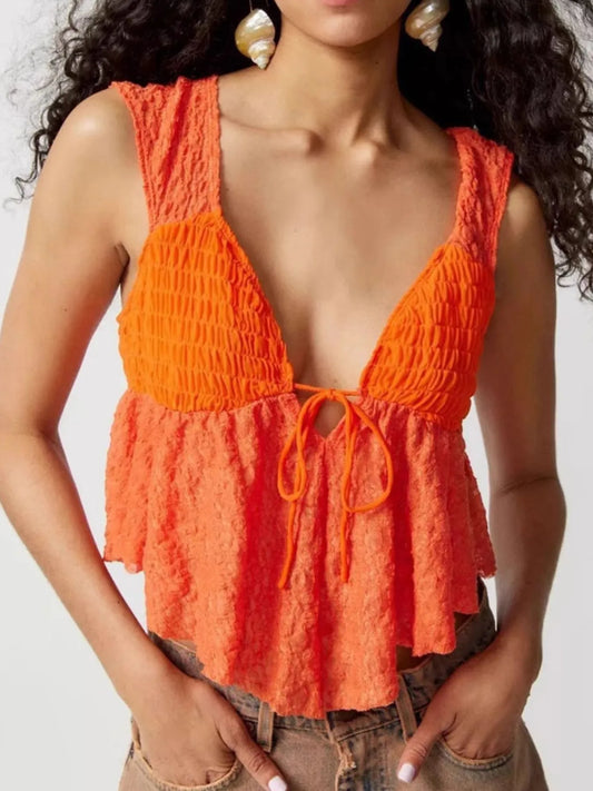 Regular price $63.84 USDRegular priceUnit price / per$63.84 USDSale price $63.84 USDSmocked Tie Front Tank Top with Plunging Neckline