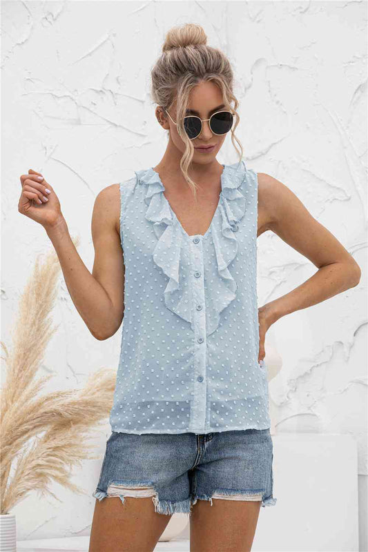 Regular price $33.75 USDRegular priceUnit price / perSale price $33.75 USDSleeveless Ruffle Trim Blouse