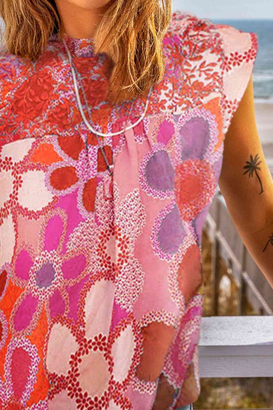 Regular price $32.61 USDRegular priceUnit price / perSale price $32.61 USDPrinted Round Neck Flutter Sleeve Top