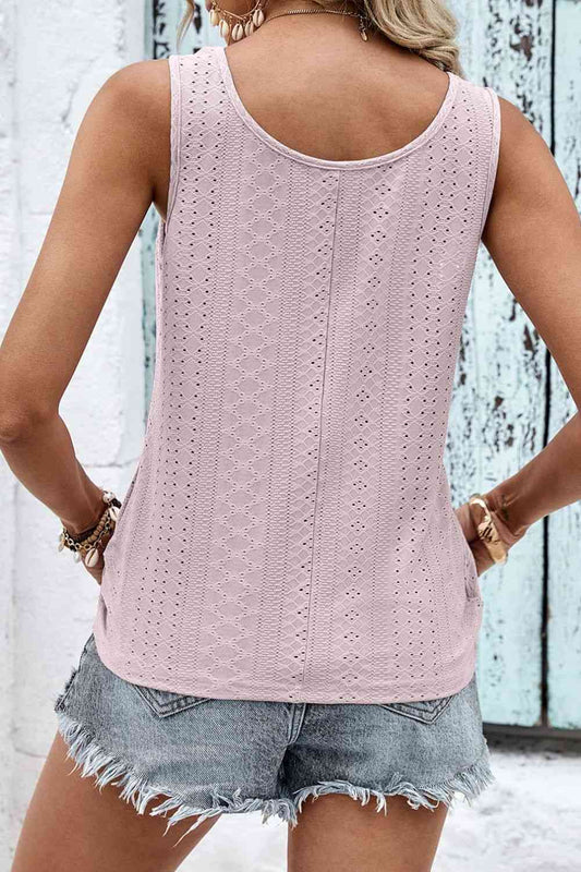 Regular price $30.93 USDRegular priceUnit price / perSale price $30.93 USDDecorative Button Hem Detail Eyelet Tank