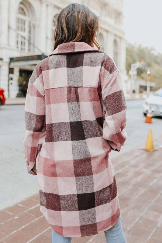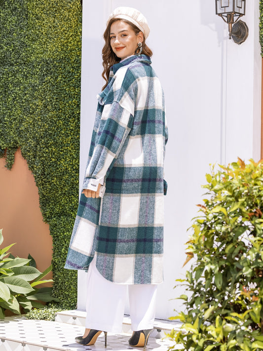 Plaid Button Up Dropped Shoulder Coat with Pockets