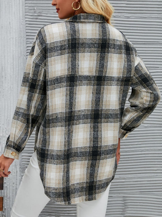 Regular price $46.65 USDRegular priceUnit price / per$46.65 USDSale price $46.65 USDPlaid Button Up Dropped Shoulder Outerwear
