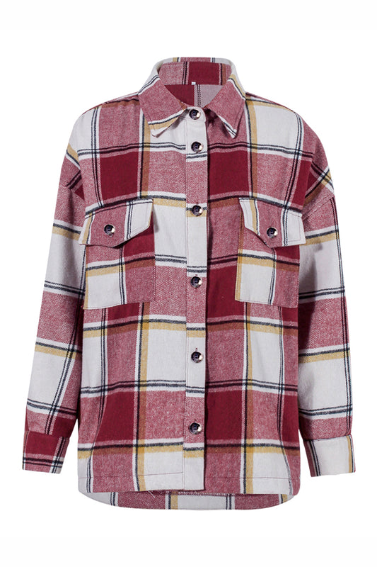 Regular price $42.42 USDRegular priceUnit price / per$42.42 USDSale price $42.42 USDPlaid Button Up Dropped Shoulder Outerwear