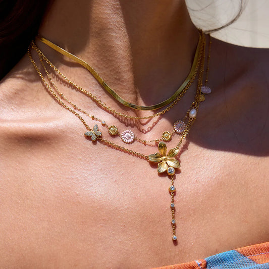 3-Piece 18K Gold-Plated Stainless Steel Flower Necklace